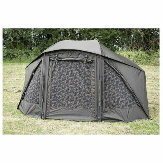 The brolly features a letterbox style door with camo mesh centre panel, roll back side windows with camo mesh panels and a completely removable front.