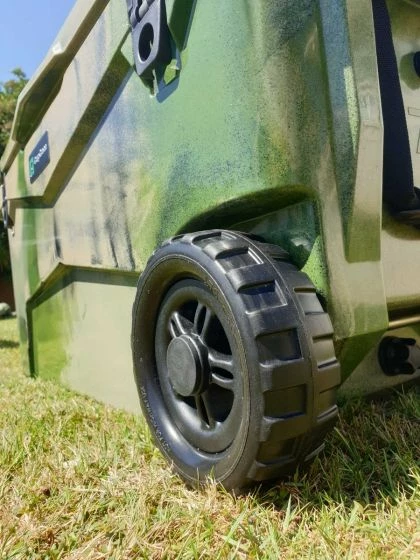Carp Green’s Extreme Stay CG70 is a 66 litre (70 Quart) capacity wheeled cool box with basket, chopping board and cup holder included. The Extreme Stay is moved around using the sturdy side handles and wheels for when towing.