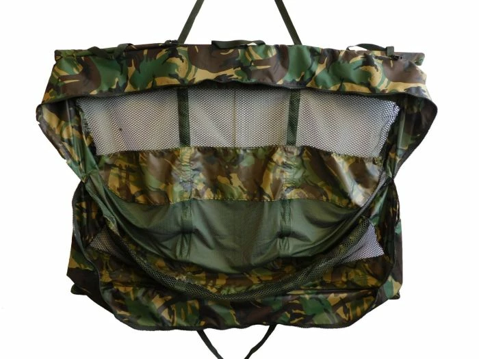 All in all a Large, Heavy duty, fish friendly retention sling designed to cope with the biggest of Carp. Comes complete with a draw-cord carry sleeve and is available in Woodland Camouflage and Olive Green.