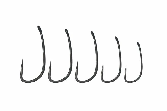 The relative proportions of a long subtly curved shank, 9° in-turned eye, wide gape and long hypodermic like point result in a hook pattern that is incredibly effective. On Ronnie rigs the hook point is in an aggressive poised position making it a very efficient hooker with superb hook holds and it is equally effective on bottom bait rigs, where the hook is very difficult to eject and turns and catches hold securely even without the aid of a line aligner or ‘kicker’.