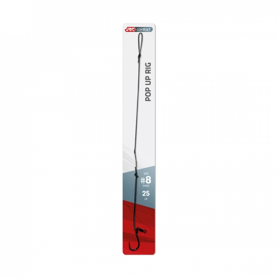 “Tied with the JRC Contact Coated Hooklink which is stripped back a few mm in front of the knot to form the “”hinge”” part. The Chod Hook is looped on to form the D section. The Contact Micro Ring Swivel is added to attach your Pop-up easily! Available in hook sizes 6 and 8.”