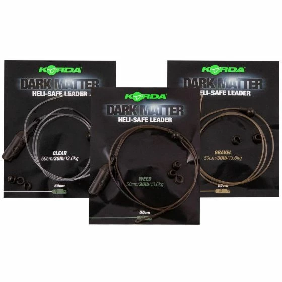 The other end of this leader has a fused loop, which your main line can either be tied to, or to allow the leader to easily be taken off, the loop-to-loop method is best. The Dark Matter leader material is very abrasion resistant, has a breaking strain of 30lb, and can be matched to whatever type of lake bed you are fishing over, as it comes in a choice of Clear, Weed, or Gravel. Each pack contains one leader.
