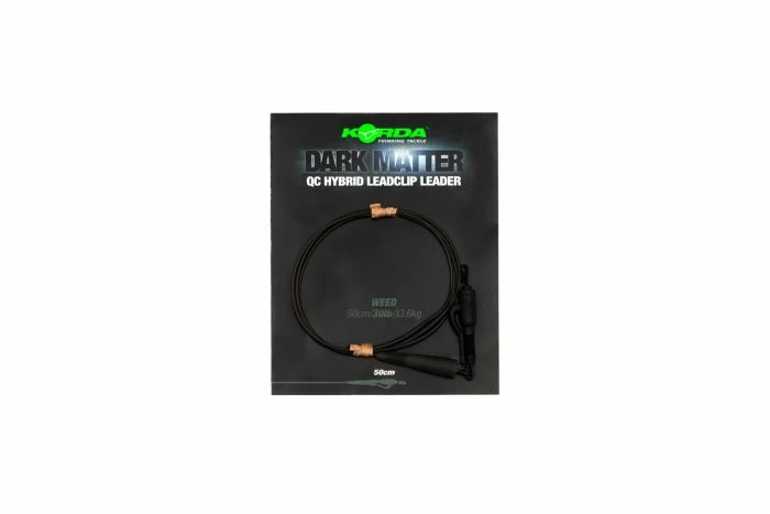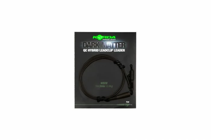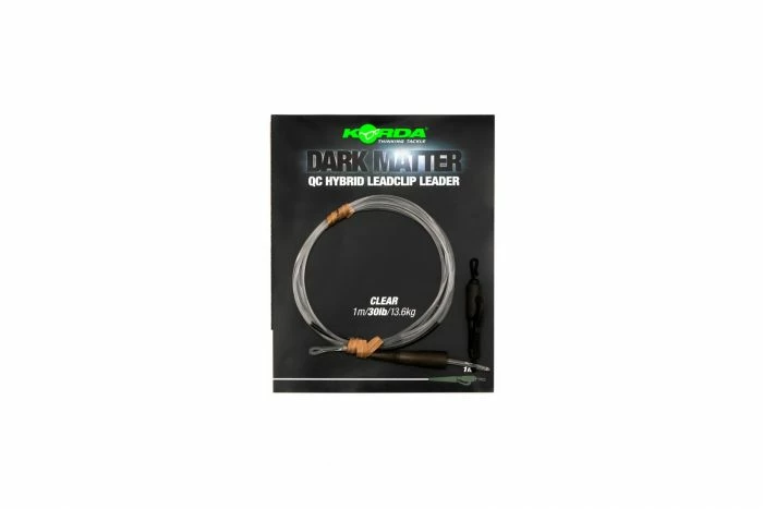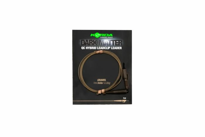 We have now added a Hybrid Lead Clip QC version to our popular range of Dark Matter fused leaders, to allow you to quickly change your hook link in as hassle-free a way as possible, whenever you choose to. These leaders have integral sections of tungsten to ensure that they stay pinned to the lakebed and help to avoid spooking wary carp, and come in a choice of 1m or 50cm lengths –to cater for those who require a shorter version, such as when fishing at long range, or where fishery rules dictate a maximum length. At one they feature a Hybrid Lead Clip QC fused onto the leader and complete with a Hybrid Tail Rubber, and at the other end there is a fused loop for easy attachment to your main line –loop-to-loop style works great and makes it easy tochange leader when you wish to, without having to cut or tie anything.The Dark Matter leader material is very abrasion resistant, has a breaking strain of 30lb, and can be matched to whatever type of lake bed you are fishing over, as it comes in a choiceof Clear, Weed, or Gravel, Clay. Each pack contains one leader.