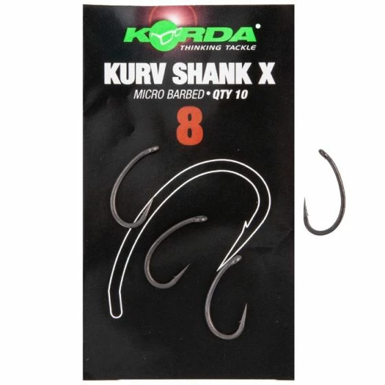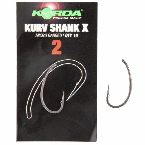 The Korda Kurv Shank is a very versatile hook and can be used with both pop-up and bottom bait rigs, including popular presentations such as the KD and IQ D-rig. It has great hooking properties thanks to an aggressively in-turned eye and curved shank, which helps it to flip round and take a hold inside the mouth, even when using it without Shrink Tube or a Kicker.