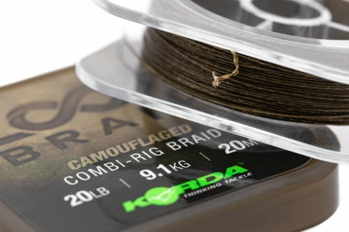 Loop Braid is a camouflaged colour in 20lb breaking strain, with 20m on each square spool which are shaped perfectly for slotting into your Korda Tackle Box.