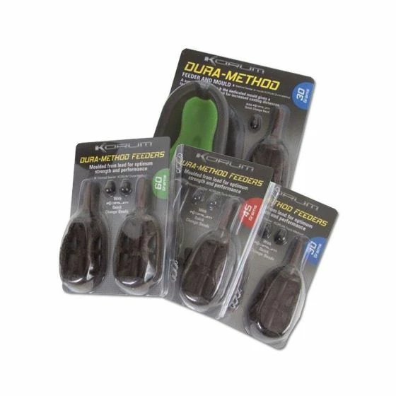 Korum Dura-Method Feeders provide a super strong feeder that ensures all your bait gets to the lakebed thanks to its unique design and structure. The dedicated mould gives a tapered shape to your bait for increased casting distances.