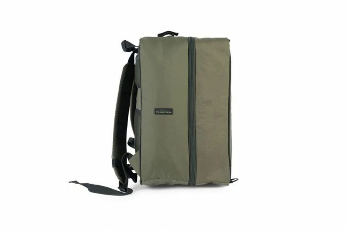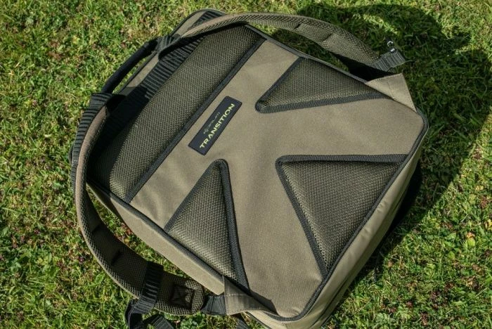 There are two velcro loops on the top of the bag to house things like folding nets and banksticks, D loops designed for carabiner attachments, plus our new Transition holster, which works in conjunction with all new Transition unhooking mats.