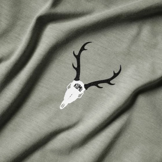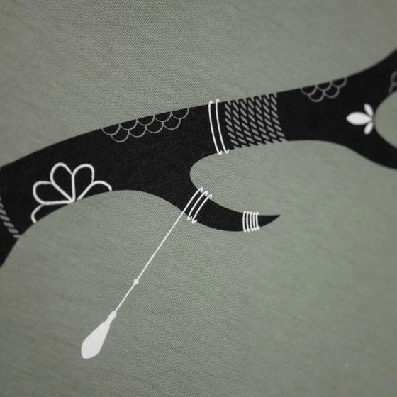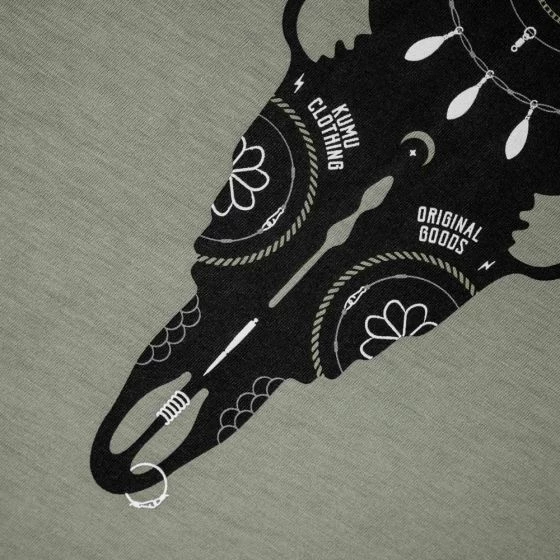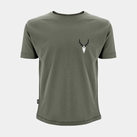 Inspired by the deer skull that hangs on our studio wall. Our Stag graphic carries through the same graphic style that you guys loved in our Calaca and Skin Deep artworks. Detailed, 2 colour stag skull featuring angling paraphernalia printed on our super soft 140gsm fabric with woven side tab detailing.