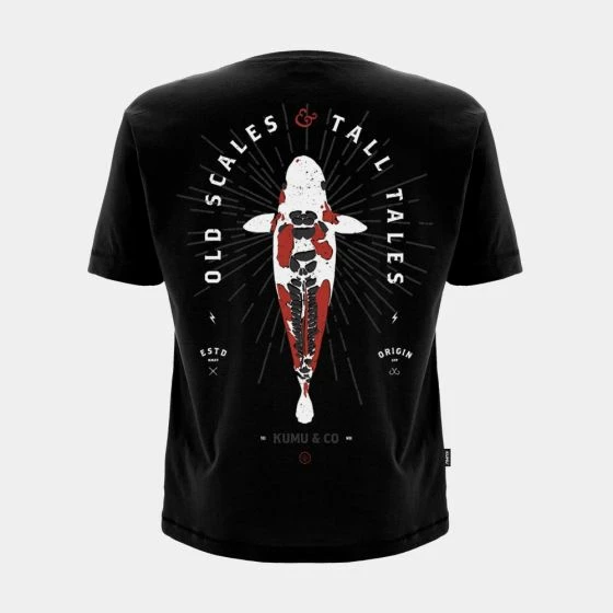Intricate 2 colour, tattoo-inspired Koi chest pocket print, large 3 colour back piece on our 140gsm, super soft 100% cotton fabric with hem tab detailing.