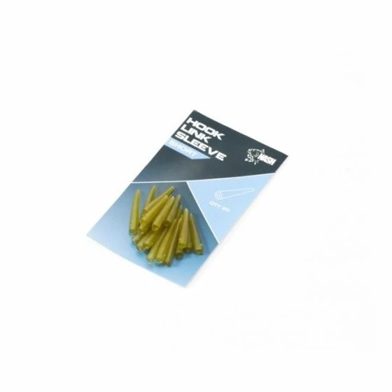 A shorter version of the popular Hooklink Sleeve to cover wide link clips and reduce tangles. Essential for bag and stick fishing with looped hooklinks. 20 per pack.