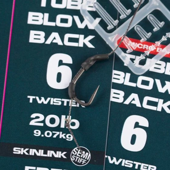 Kevin Nash’s Blow Back Rig – the most versatile carp rig in history. Tied with Skinlink and a Pinpoint Twister it sinks quickly and offers aggressive hook turning properties and unbeatable anti-eject performance from the critically positioned Blow Back Tube.