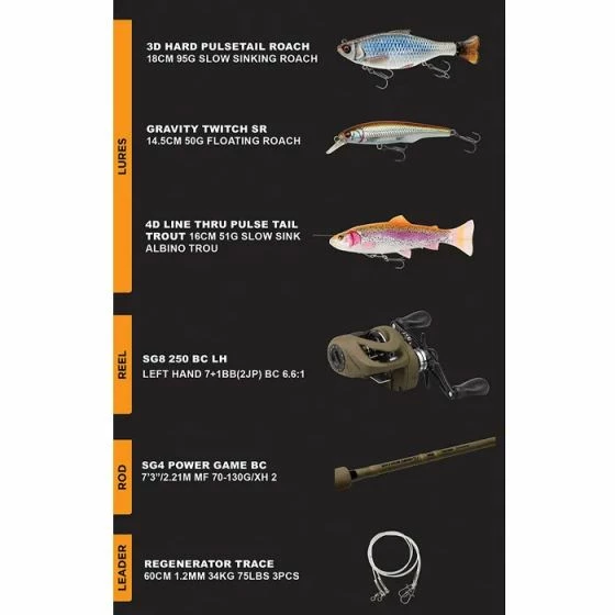 Savage Gear The Wit Fishing Kit, Want to get inside the mind of one of Europes most successful anglers? We cant do that, but we can give you the kit he uses to tame big pike all around the continent. This is the Wit kit, expertly chosen by innovative and skilful angler Sean Wit inside the box youll find everything you need to start getting more bites from big pike. From the awesome camo green casting reel to the tail of the lure, the Savage Gear Wit Kit will allow you to fish with comfort, style and success.