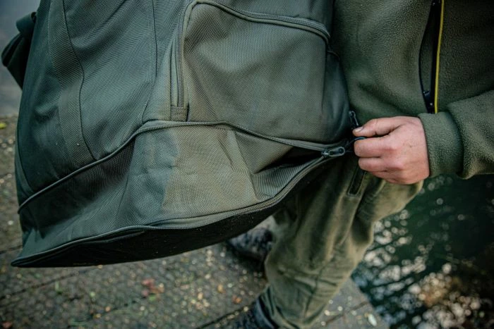 Designed with a full-size, internal stuff pocket, this is suited to storing both clean and dirty clothes, or clothes and shoes, separately in the same bag. Ideal size for a week-long session, or for storing work and fishing clothes separately for overnighters.