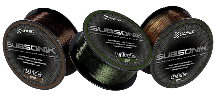 SUBSONIK is available on 1200m value spools and 3000m bulk spools… in brown, green and camo colours, and in five different diameters to cover all aspects of carp fishing.