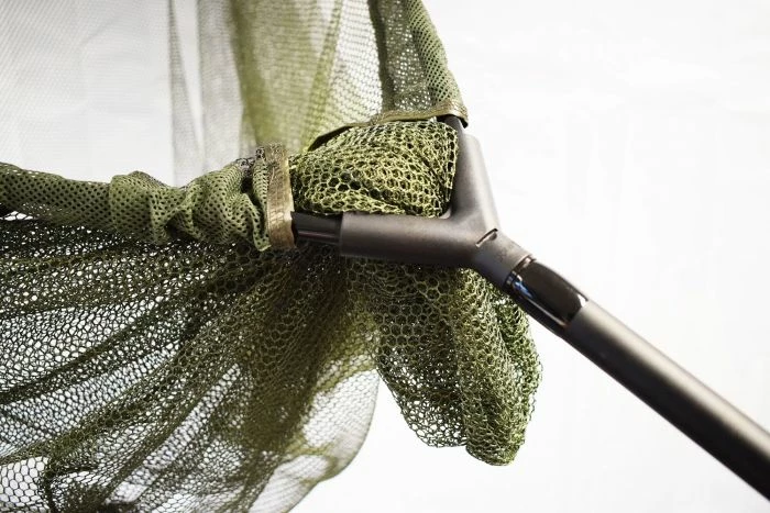 Super stiff net arms with curved end protectors are matched to a medium depth green mesh; this can be tucked into the spreader block retainer for easier manoeuvrability and quick release. With a discrete matt black finish these nets make the perfect match for our rods.