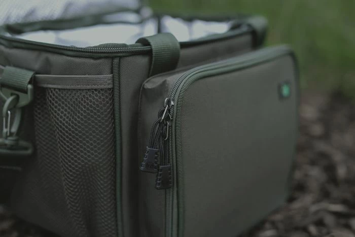 “A compact cool bag that will take a two-pint milk carton standing up. It has a foil-lined inner that’ll keep your food fresh on the bank, with elastic straps on the inside to stop its precious cargo falling over. Mesh pockets on either side house cooking essentials and the front pocket features a number of elastic loops that will hold spoons, knives and forks securely.